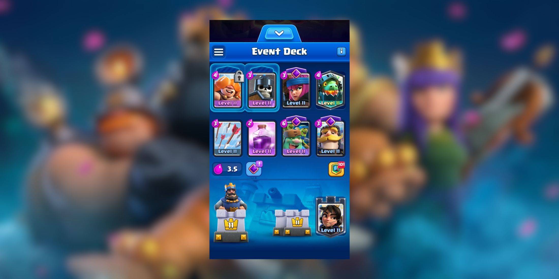 Este mazo presenta a la Ballesta como tu principal condición de victoria, apoyada por Arqueras, Caballero y Duende Cerbatana. La Banda de Duendes contrarresta eficazmente a los golpeadores pesados como el Príncipe, P.E.K.K.A. y el Jinete del Carnero. La abundancia de unidades pequeñas hace que sea difícil para los oponentes defenderse eficientemente. Por ejemplo, si usan Flechas o Tronco en tus Arqueras, puedes desplegar rápidamente a Duende Cerbatana o Banda de Duendes para mantener la presión ofensiva.