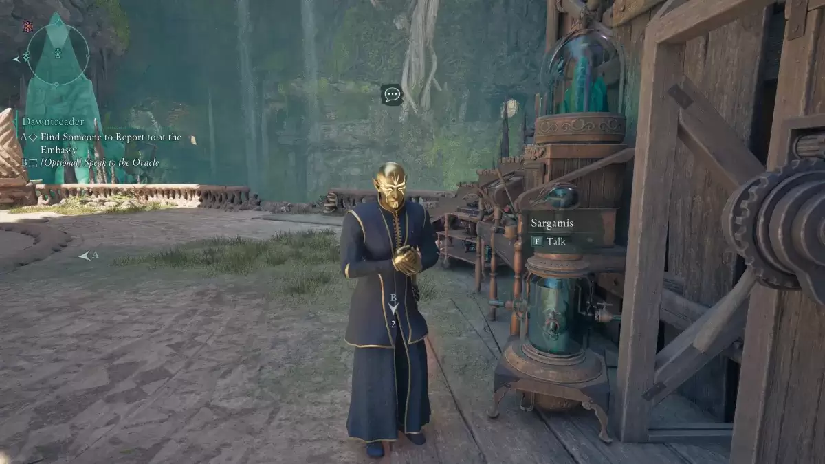 Coloque a lasca na estátua antes de falar com Sargamis e ative a máquina. Depois de falhar, converse com Sargamis e convence -o de que seu plano não terá sucesso. Evite escolher a opção de intelecto sobre a transferência de alma ao vivo e guiá -lo a entender que Eothas se foi. Essa abordagem leva Sargamis a abandonar seu plano.